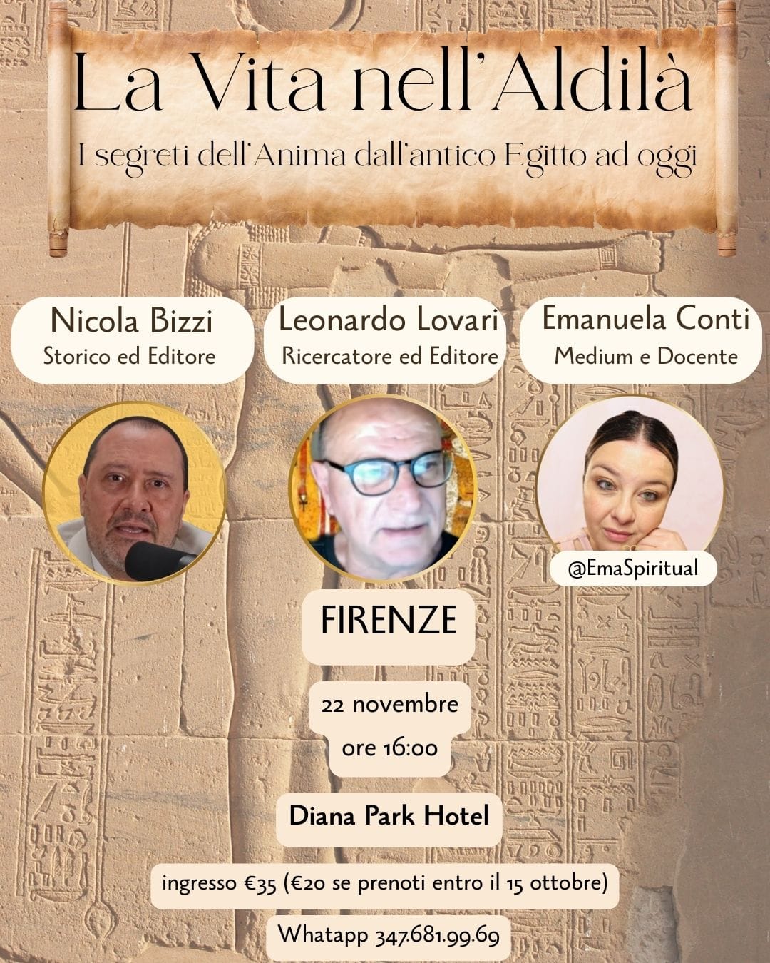 La Conferenza sull'Antico Egitto, tratterà principalmente: LA VITA DOPO LA MORTE.